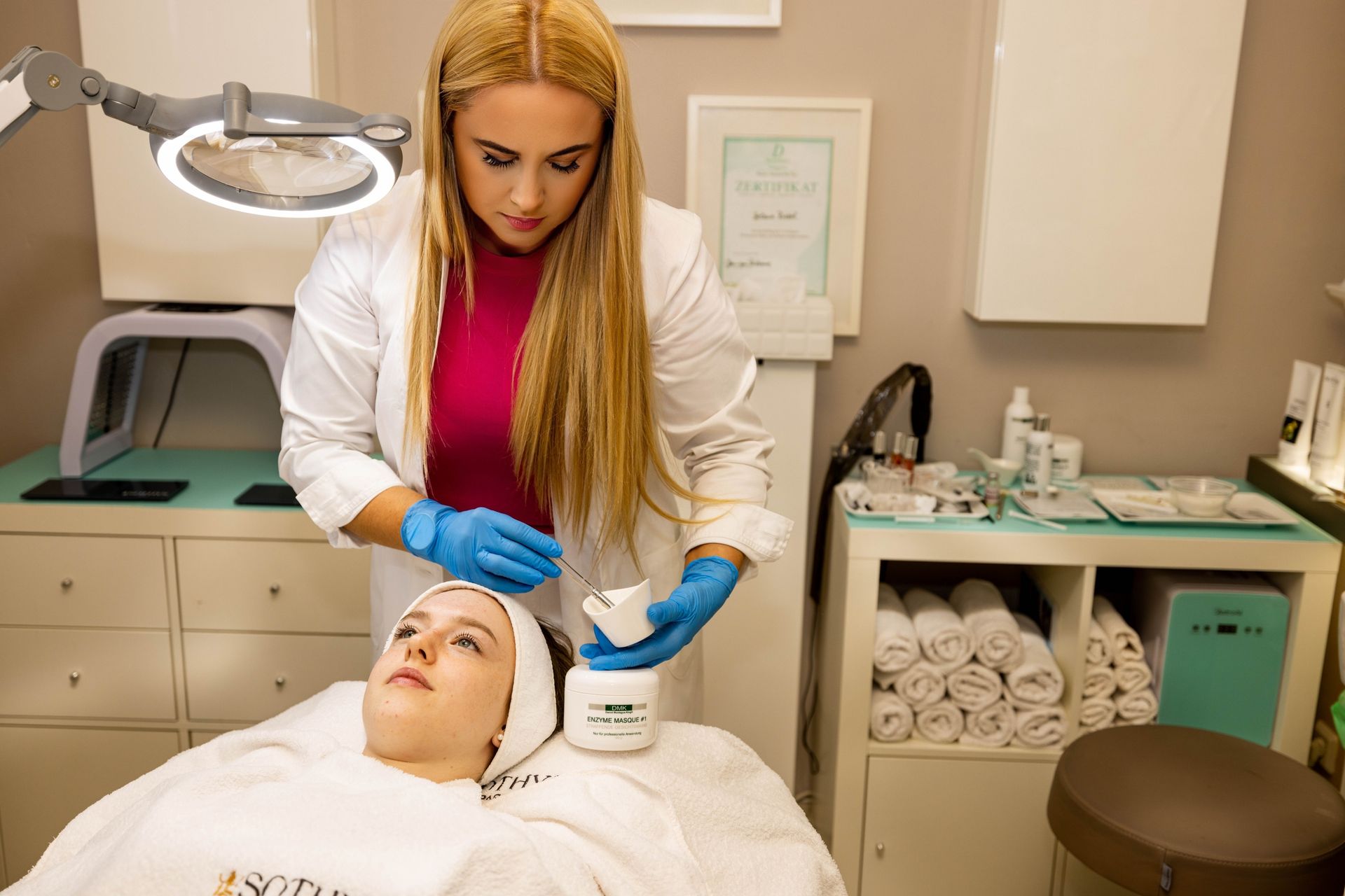 Wir beseitigen abgestorbene Hautschüppchen für den frischen Teint, entfernen alle Unreinheiten, damit deine Haut atmen kann und regulieren den Talgfluss, um fettige Haut zu beseitigen. Der Selbstreinigungsprozess der Haut wird reaktiviert, um den Effekt sauberer Haut zu verlängern. Wir besprechen zusammen dein tägliches Reinigungsprogramm, passend zu deinem Hautzustand.