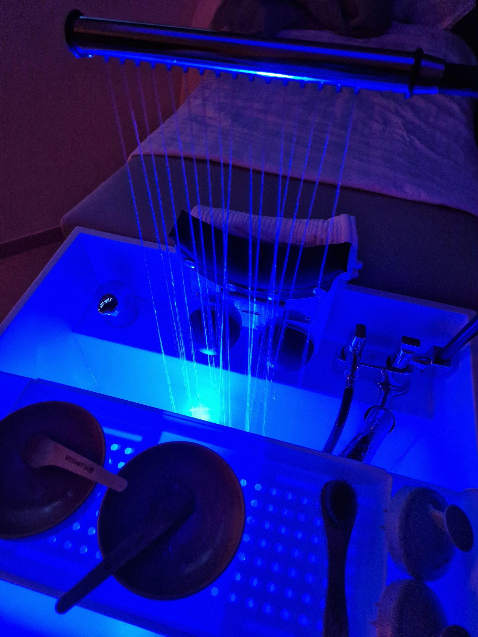 Die HeadSpa-Behandlung stammt ursprünglich aus Asien und verbindet intensive Pflege mit tiefer Entspannung. Im Mittelpunkt steht eine sanfte Wasserfall-Dusche, die gleichmäßig über die Kopfhaut fließt und ein beruhigendes, fast meditatives Gefühl erzeugt.